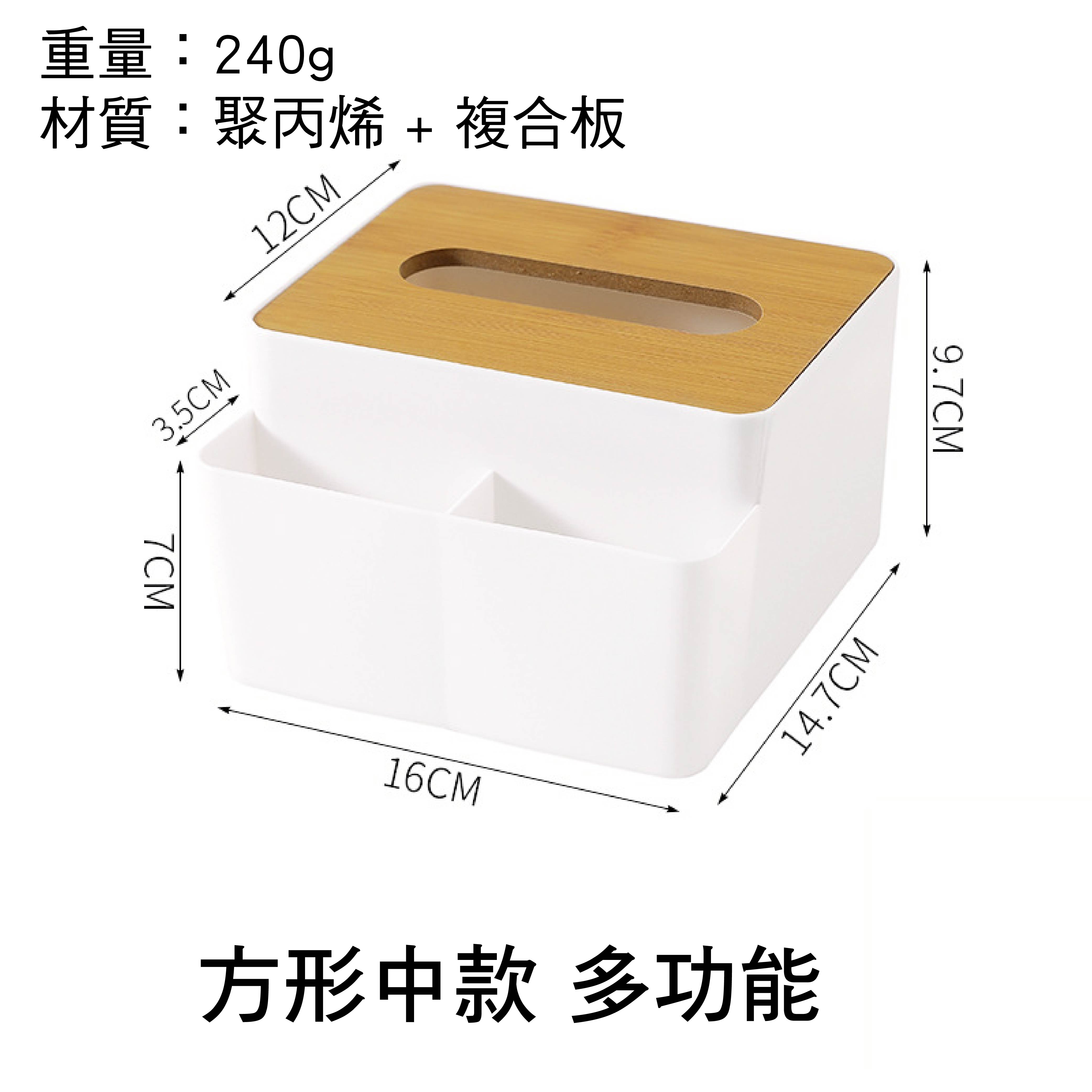 - 方形中款(多功能分格):16x14.7x9.7cm,重240g (適用五月花小尺寸衛生紙)