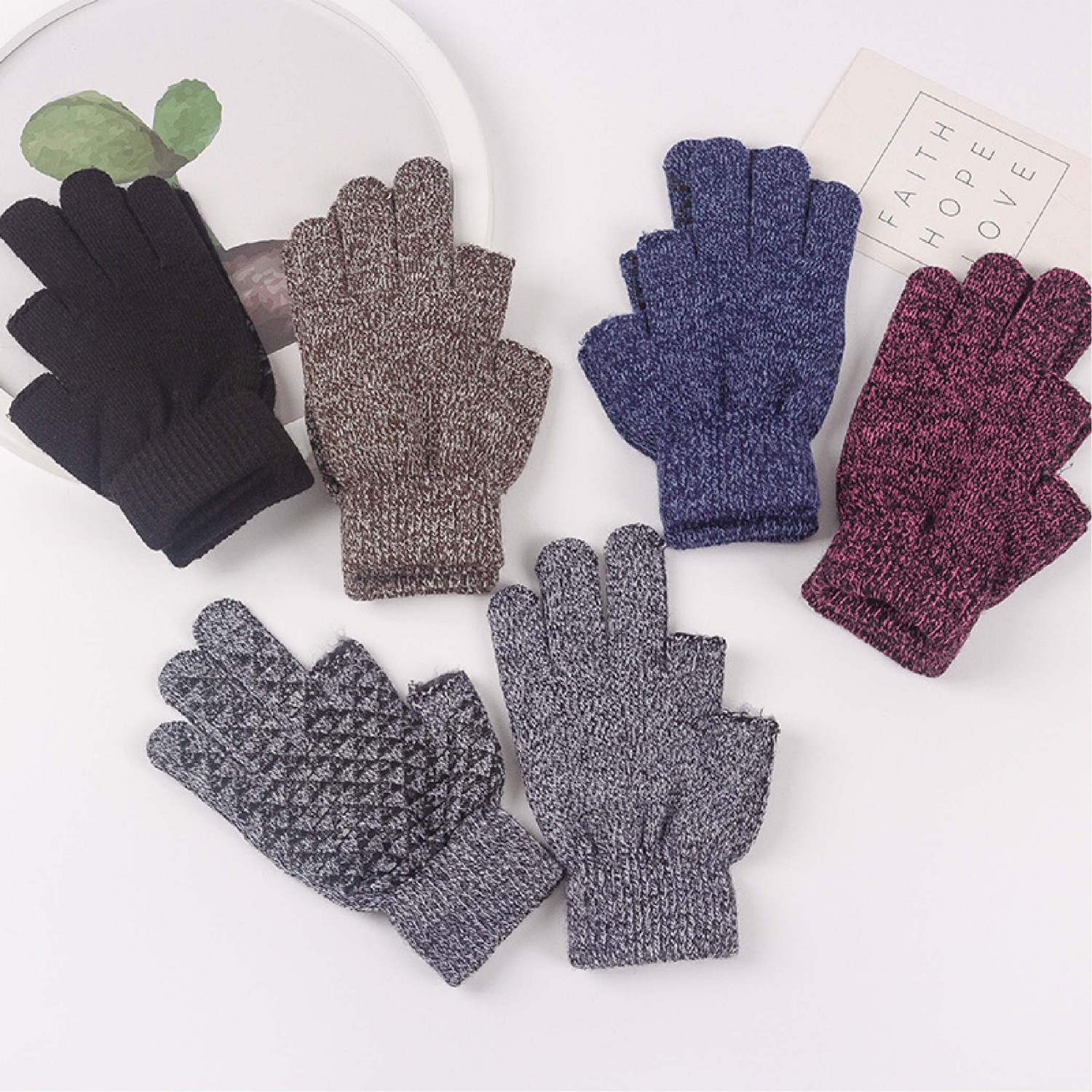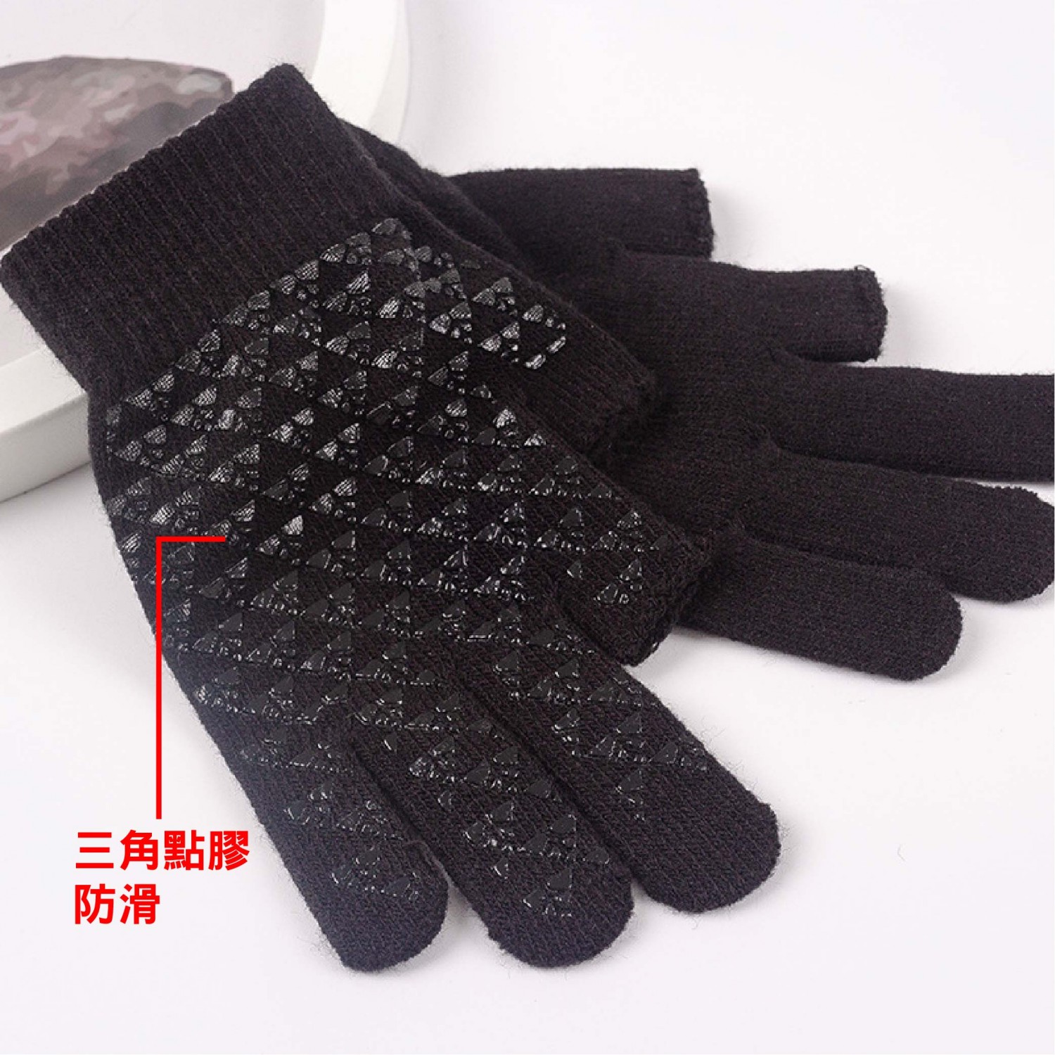 聖誕禮品! 露2指加絨針織手套|三角點膠防滑|交換禮物首選