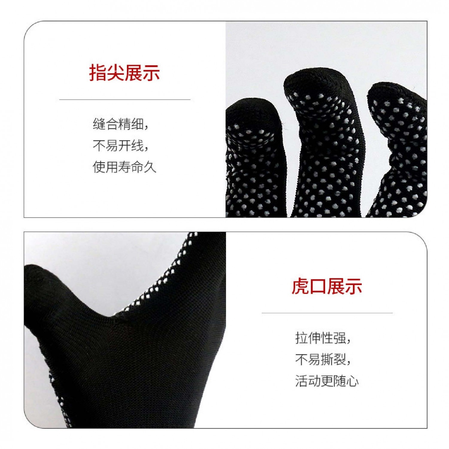 ◆ 手掌及手指部分覆蓋點膠,增加摩擦力,抓握輕鬆省勁,同時讓手套更耐磨