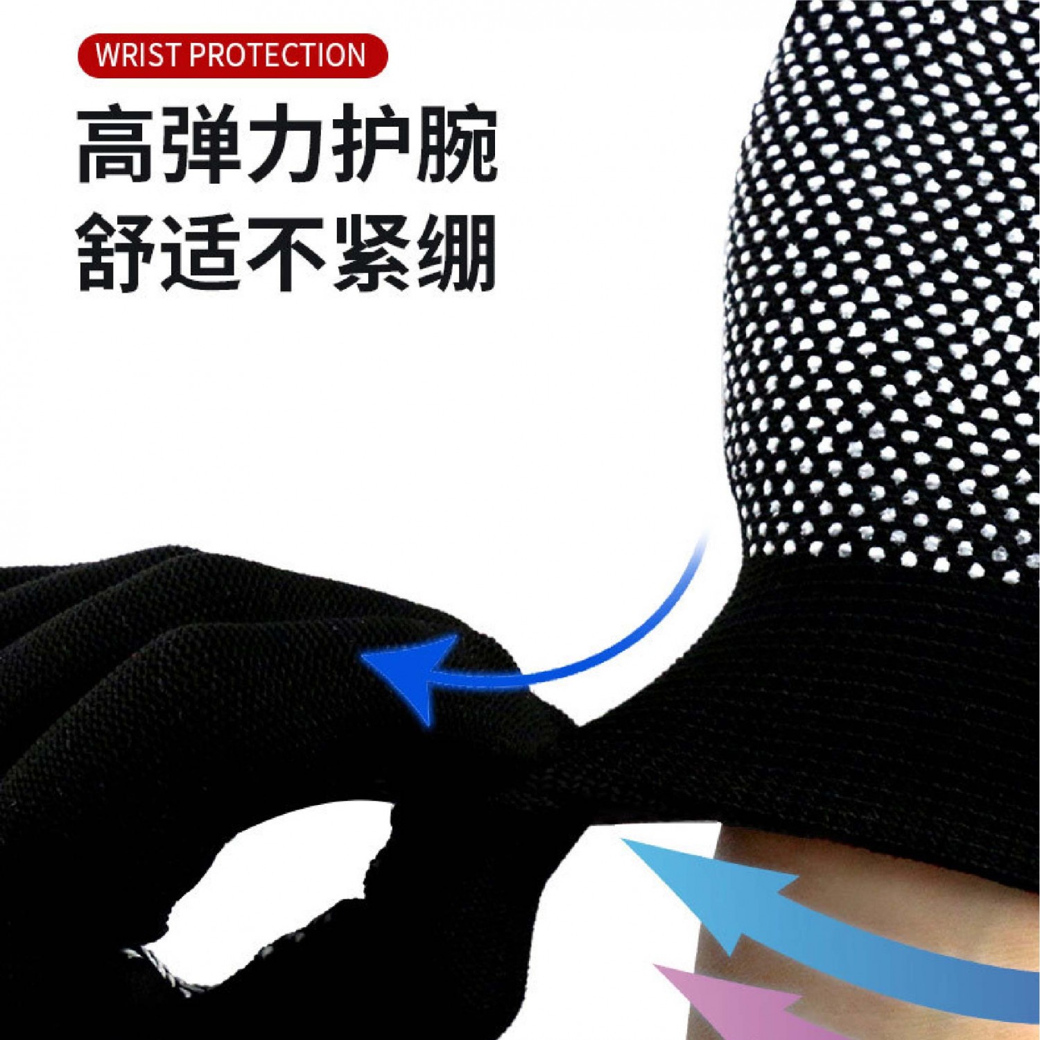 ◆ 精細鎖邊防開線,彈性護腕加鎖邊,防止使用時脫落