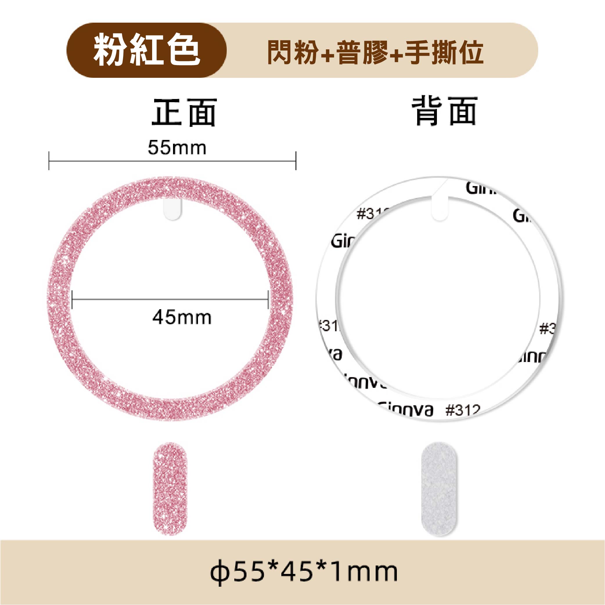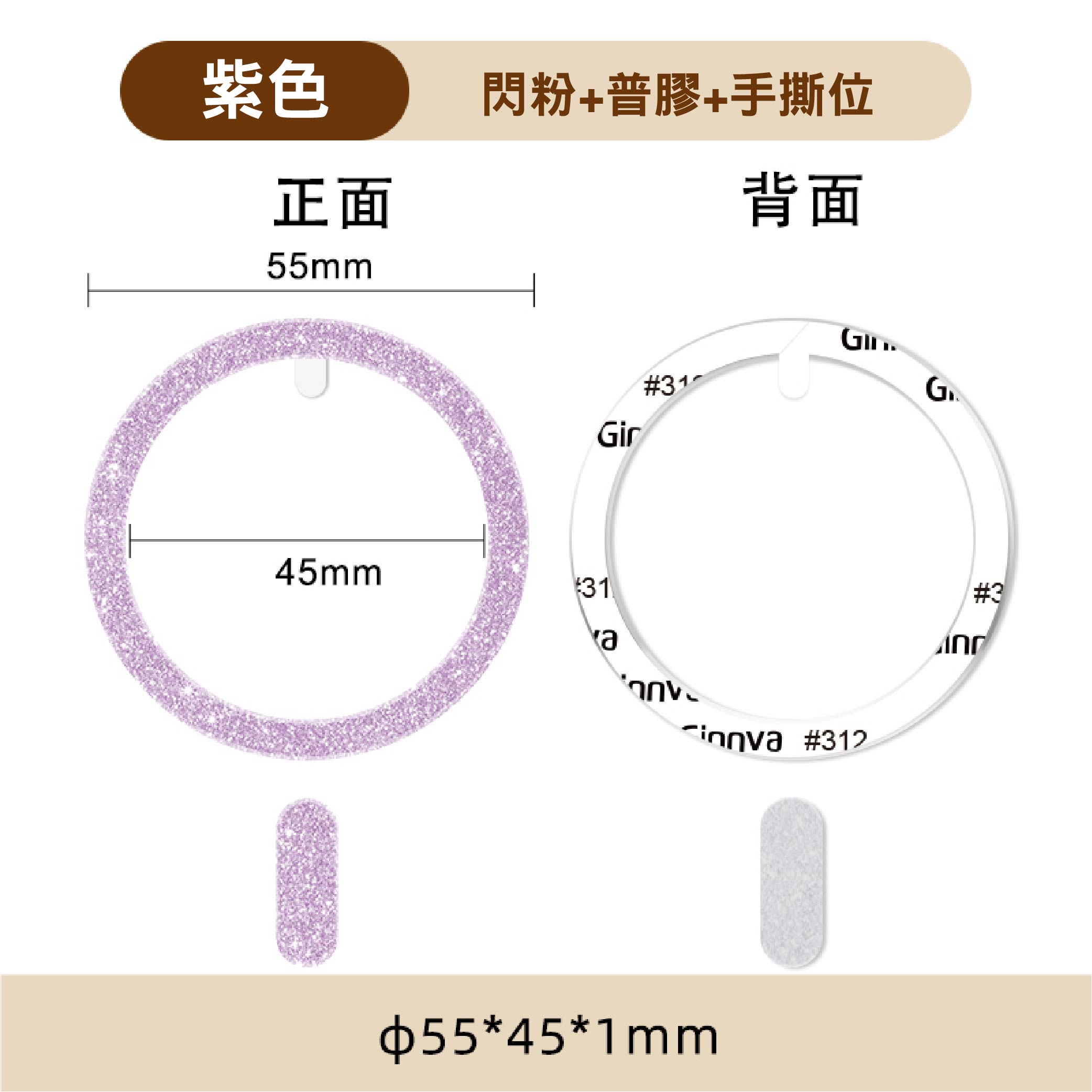 尺寸:直徑55mm*45mm,厚1mm
