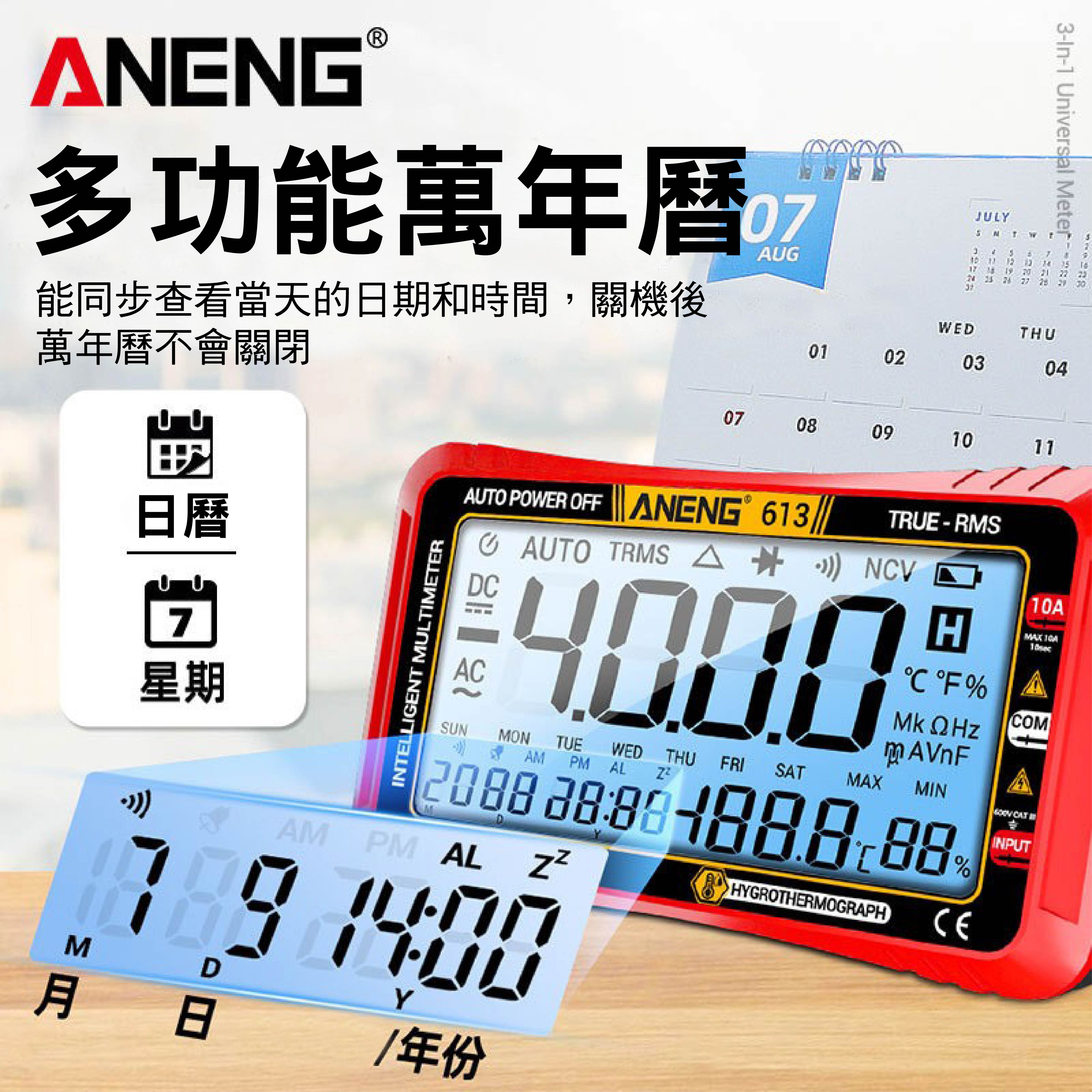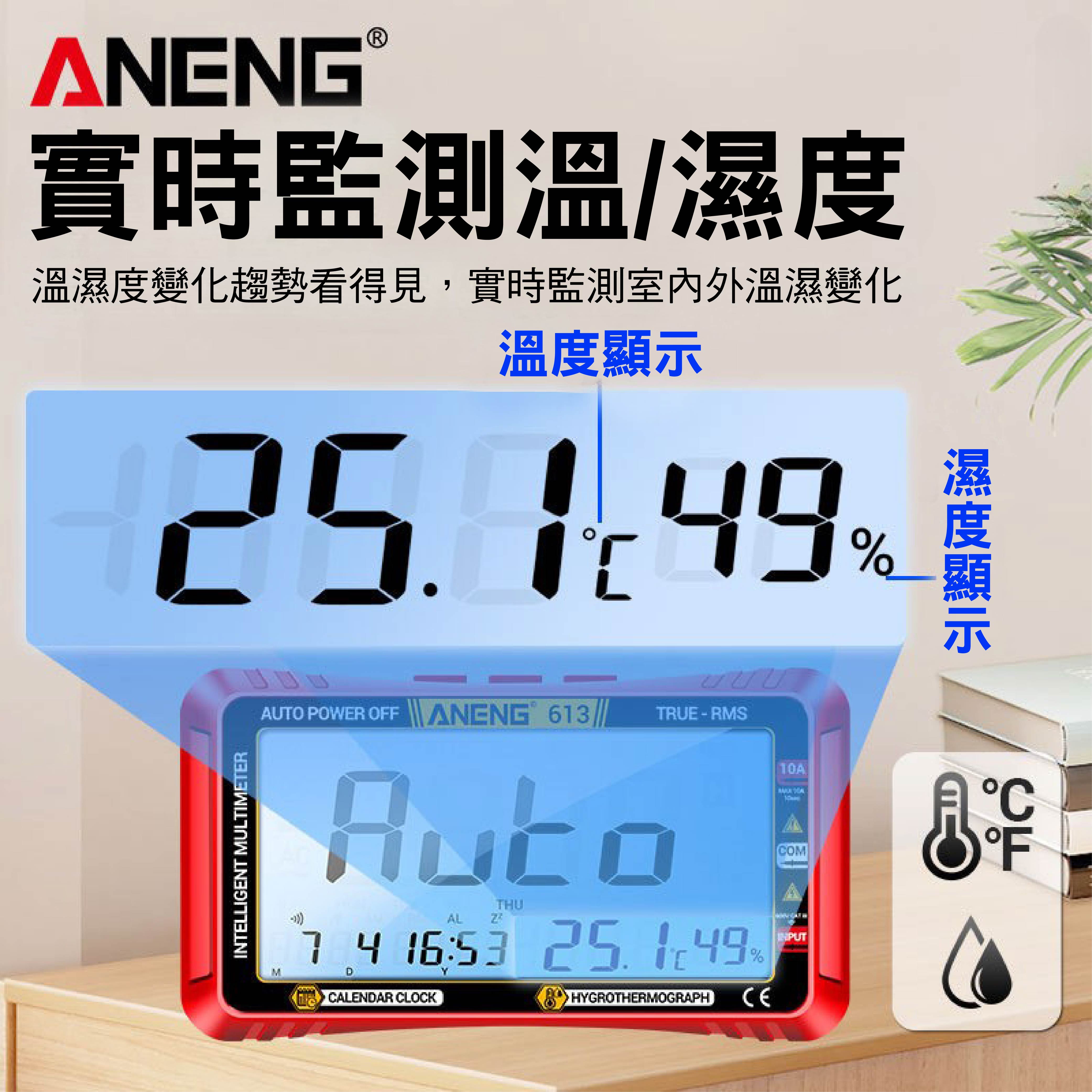 ◆ANENG 613多功能數位萬用表,結合溫度、濕度、萬年曆功能於一身