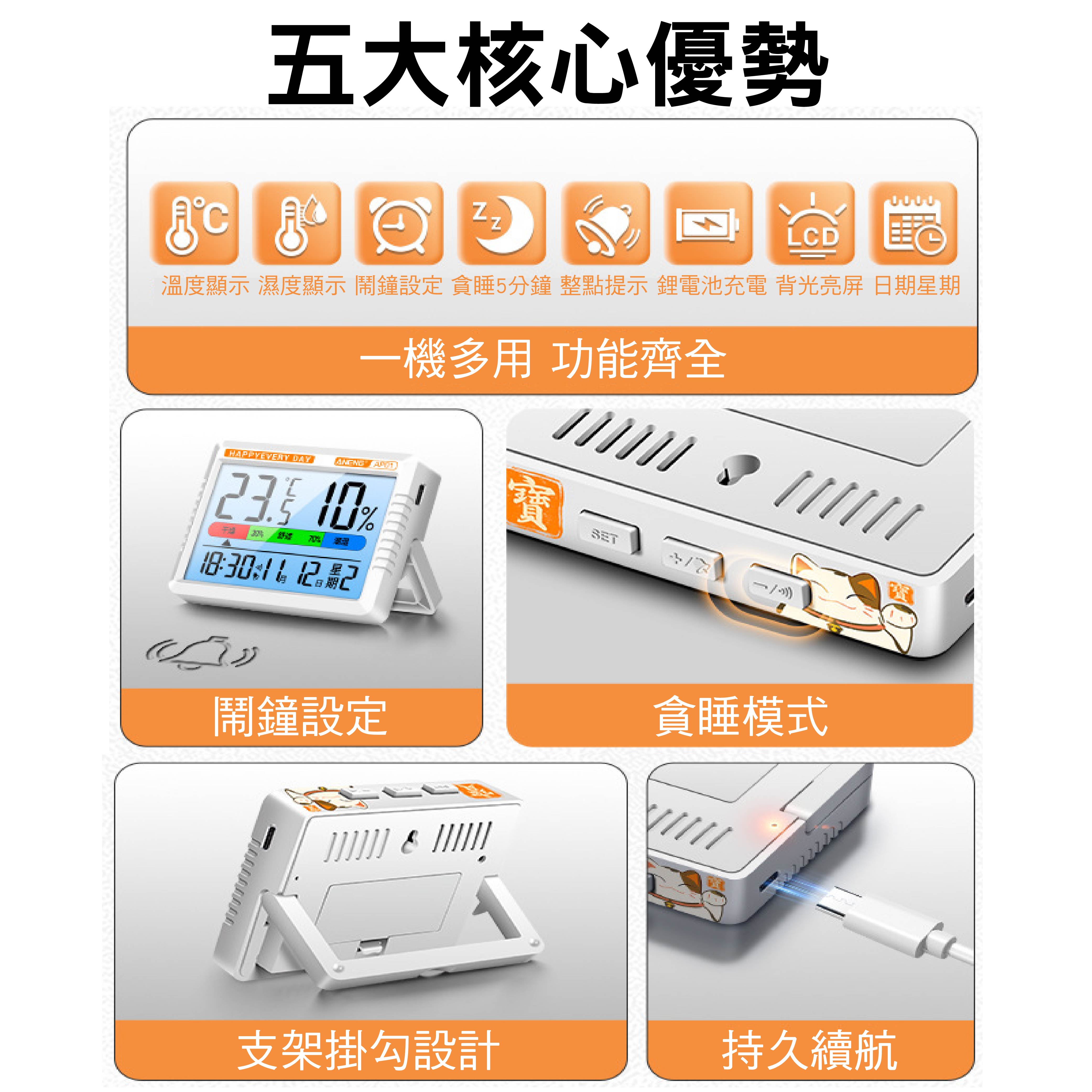 ◆鬧鐘功能,貪睡模式,整點提醒