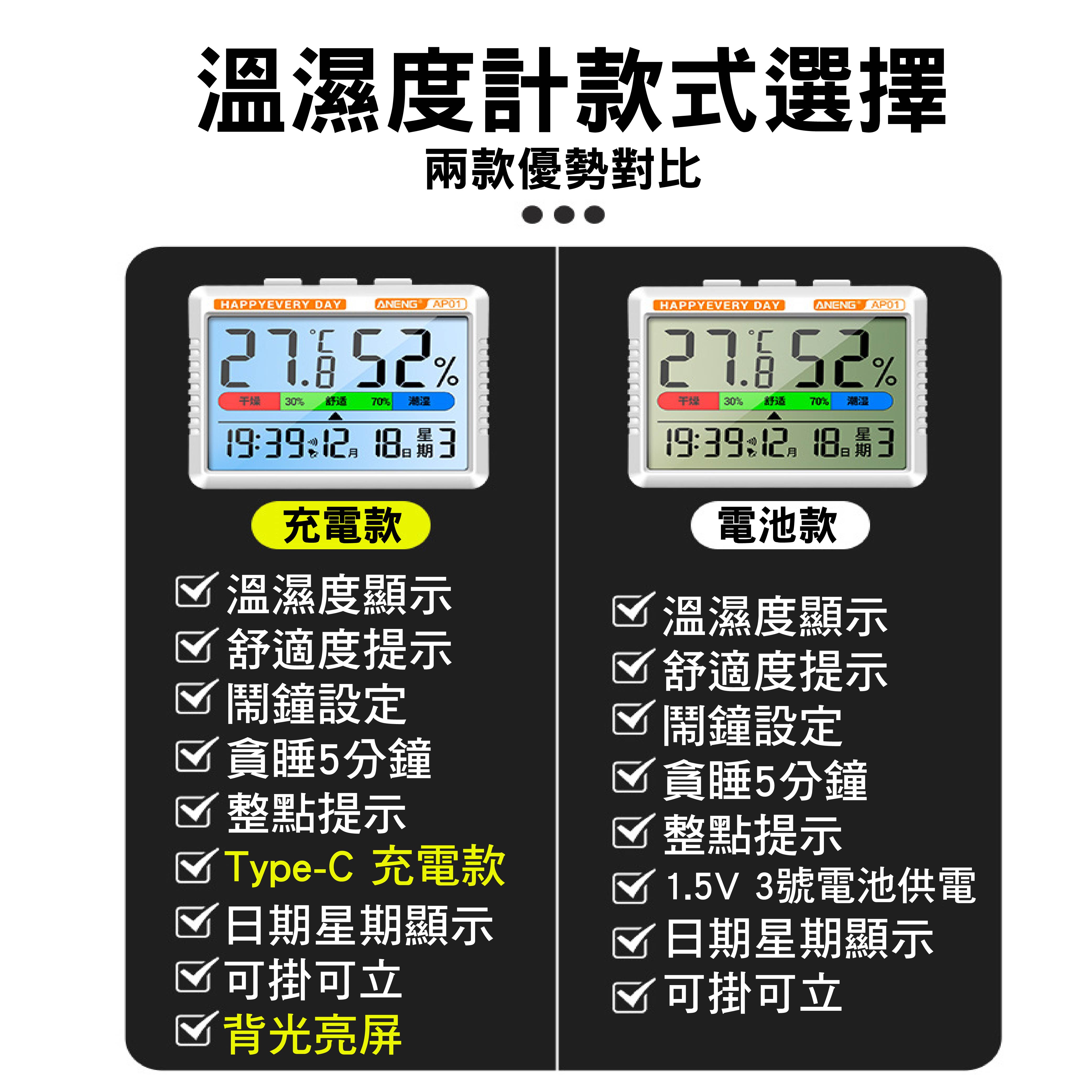 ◆溫濕度即時顯示,環境舒適度提醒(乾燥、舒適、潮濕)