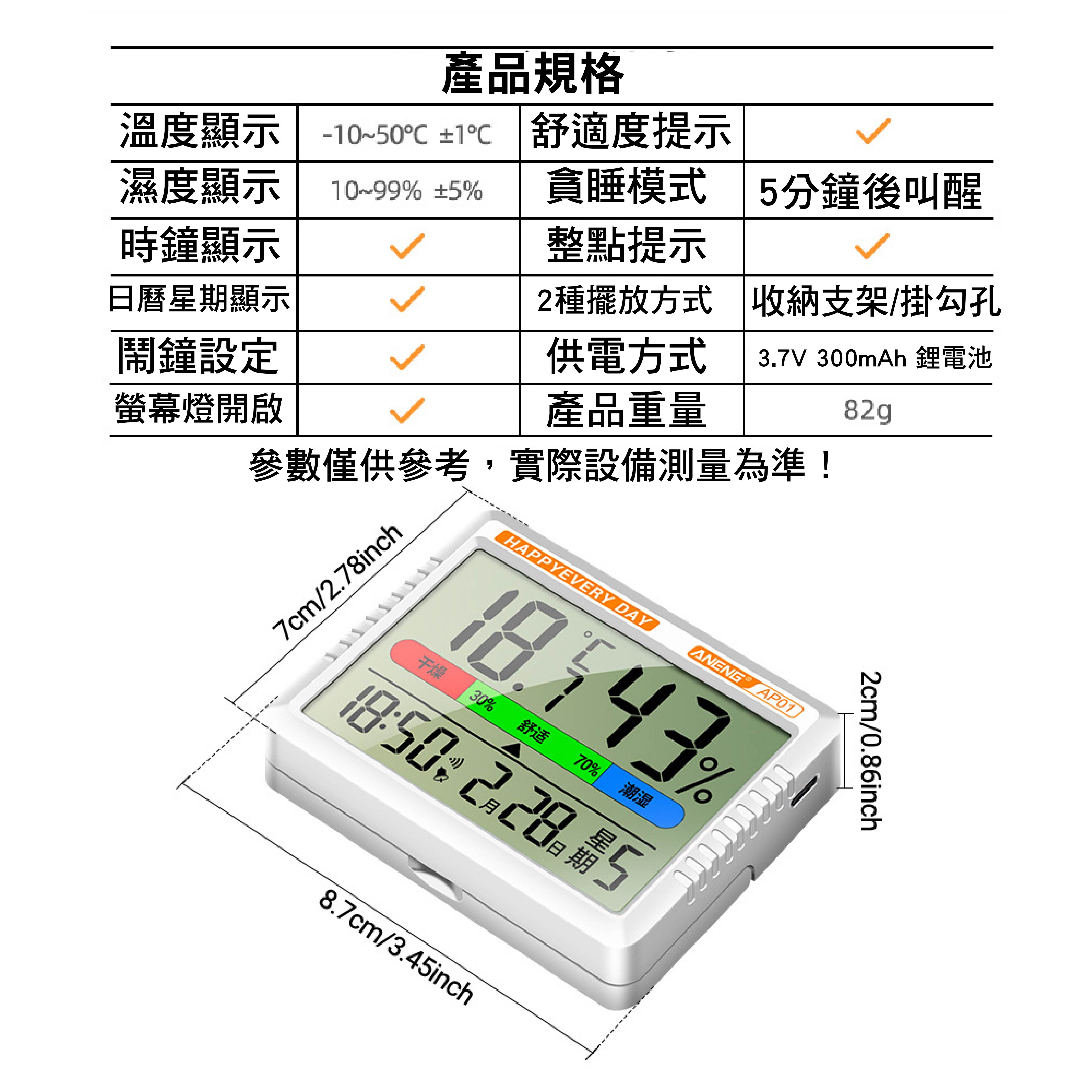 濕度顯示範圍:10%~99%(±5%)
