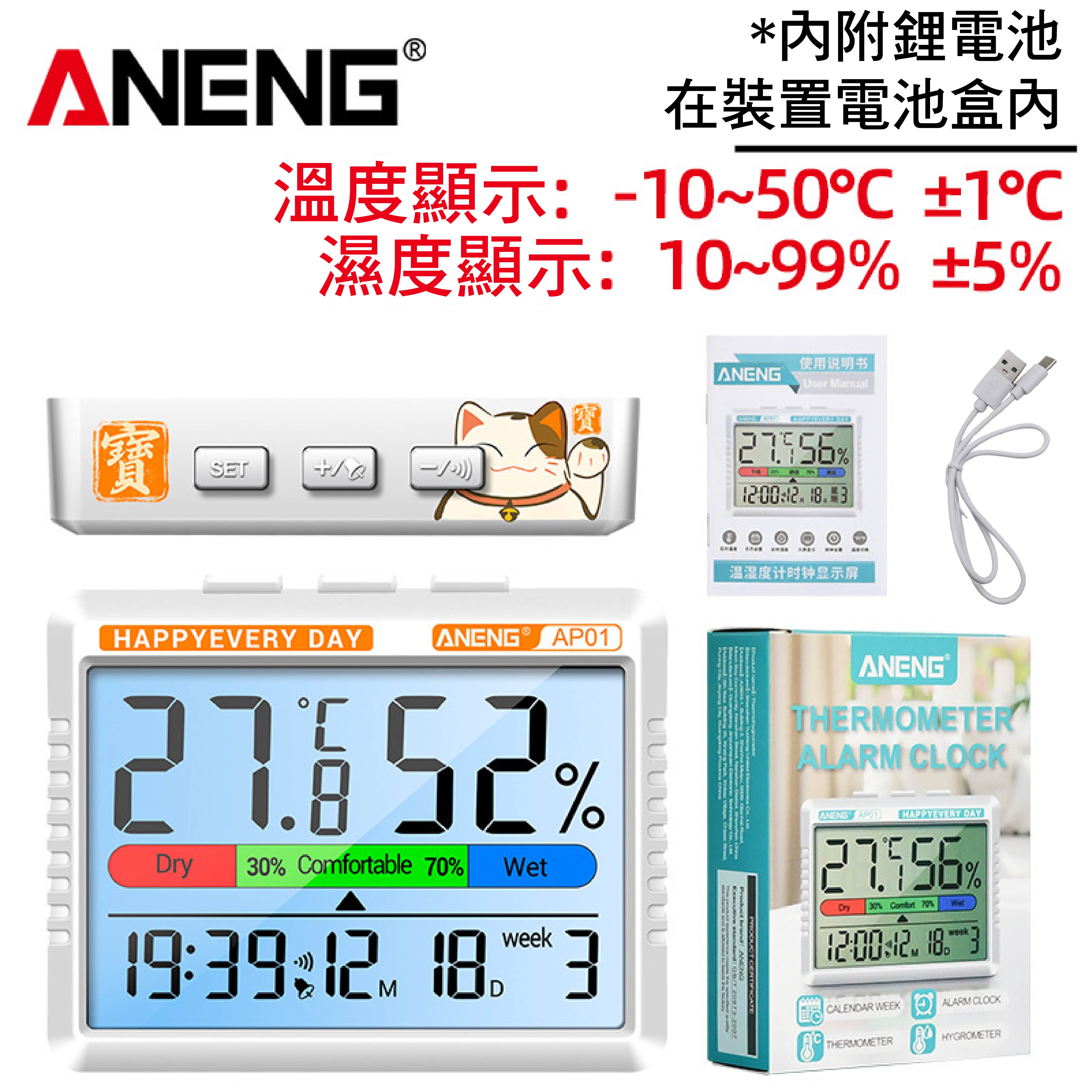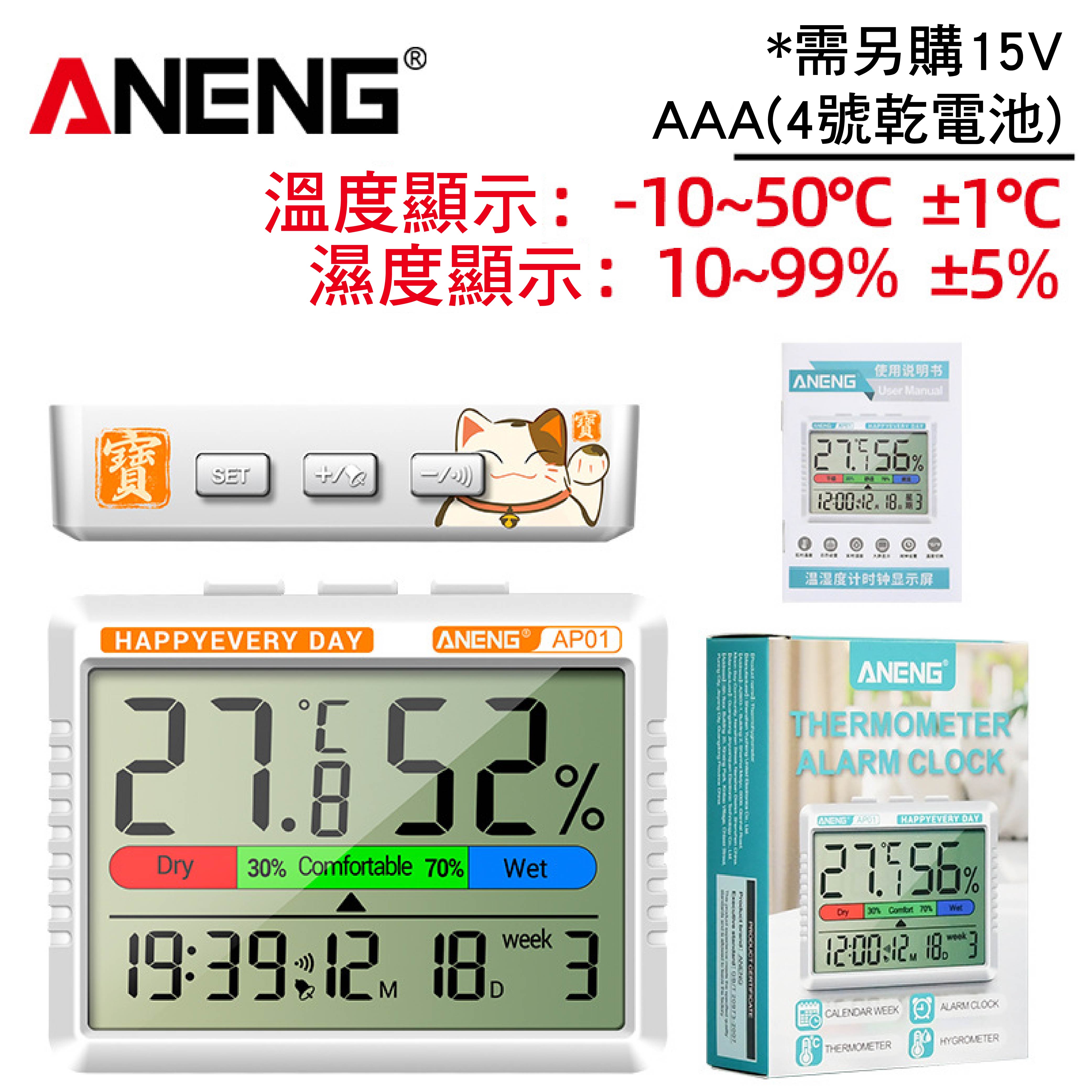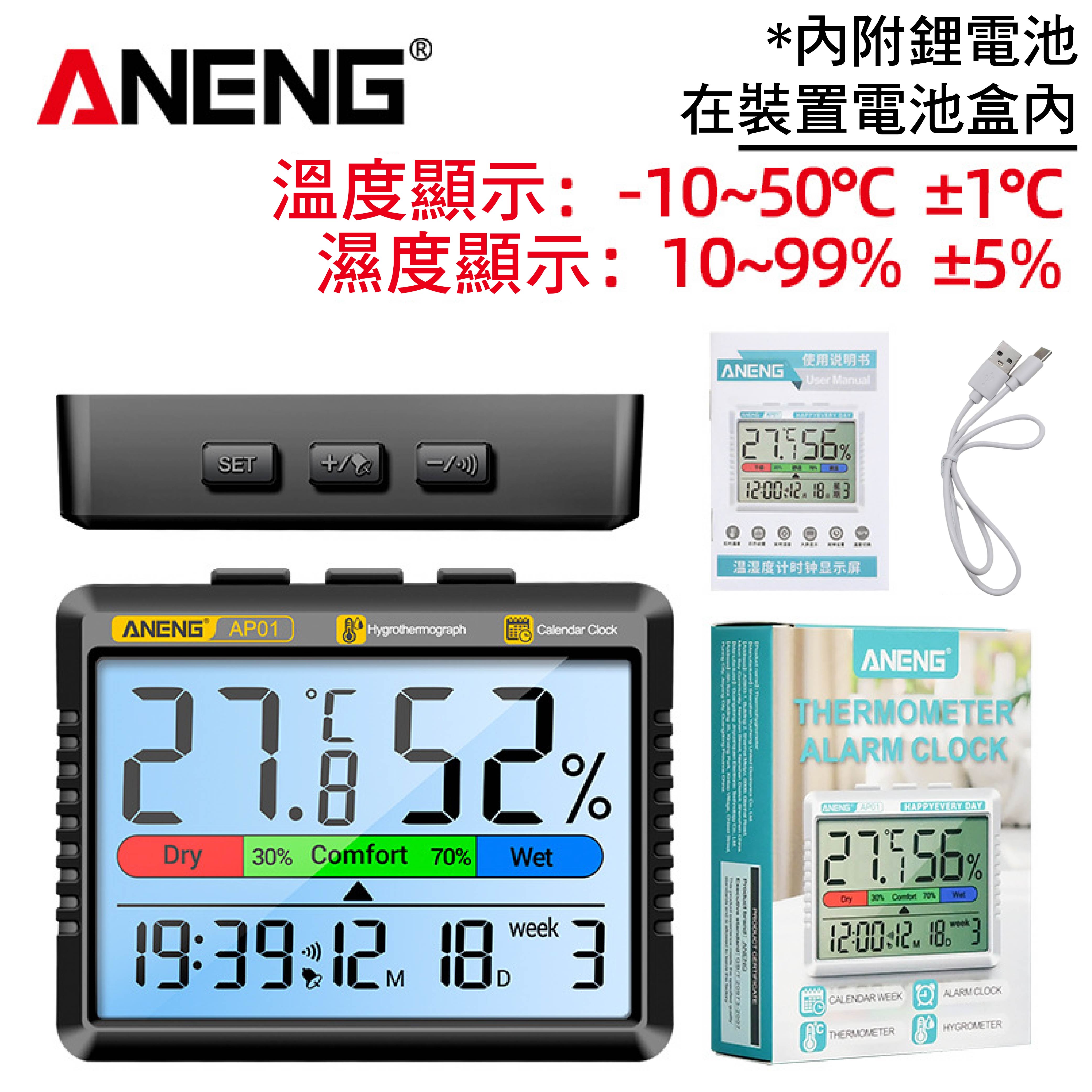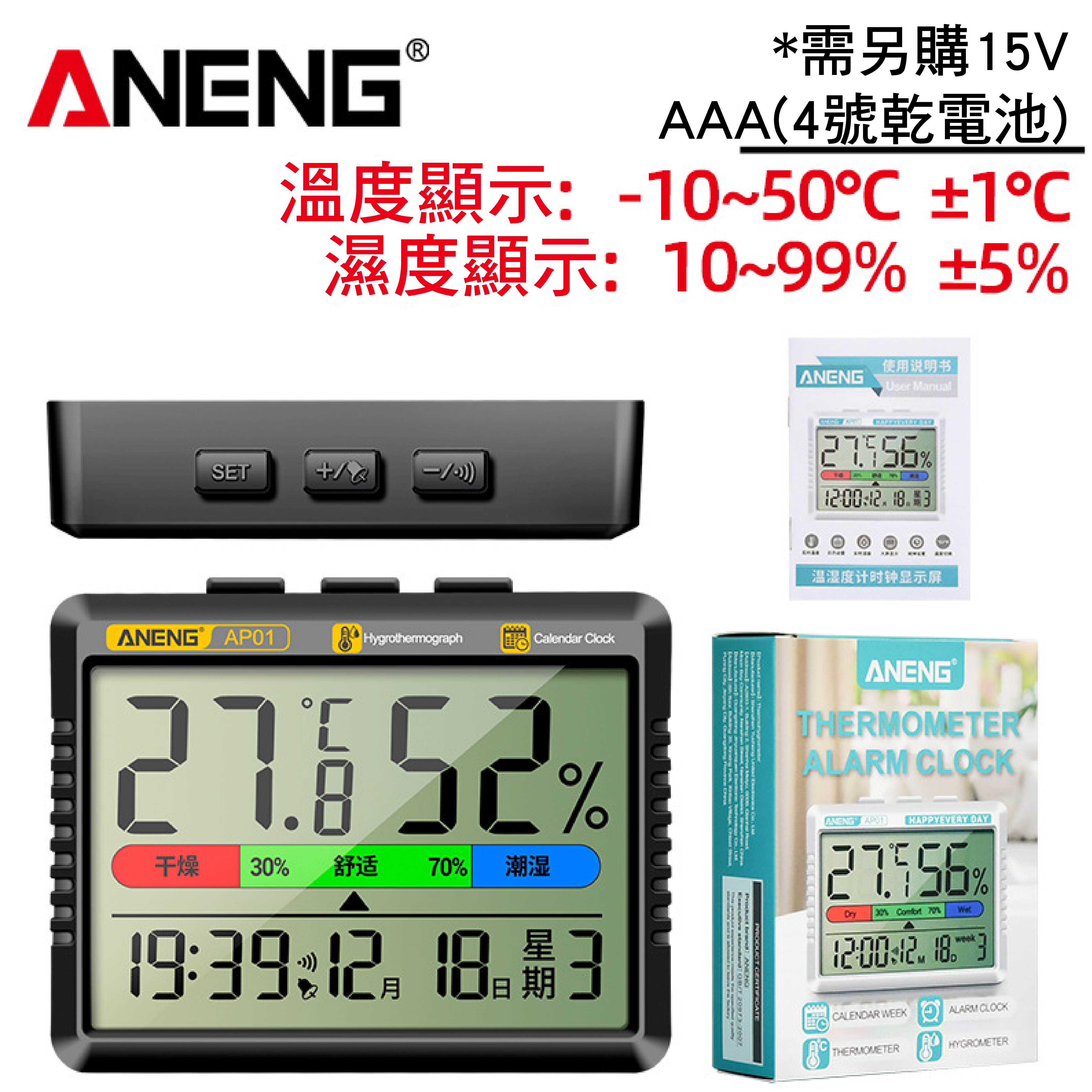 ANENG電子大屏幕溫濕度計|可立可掛