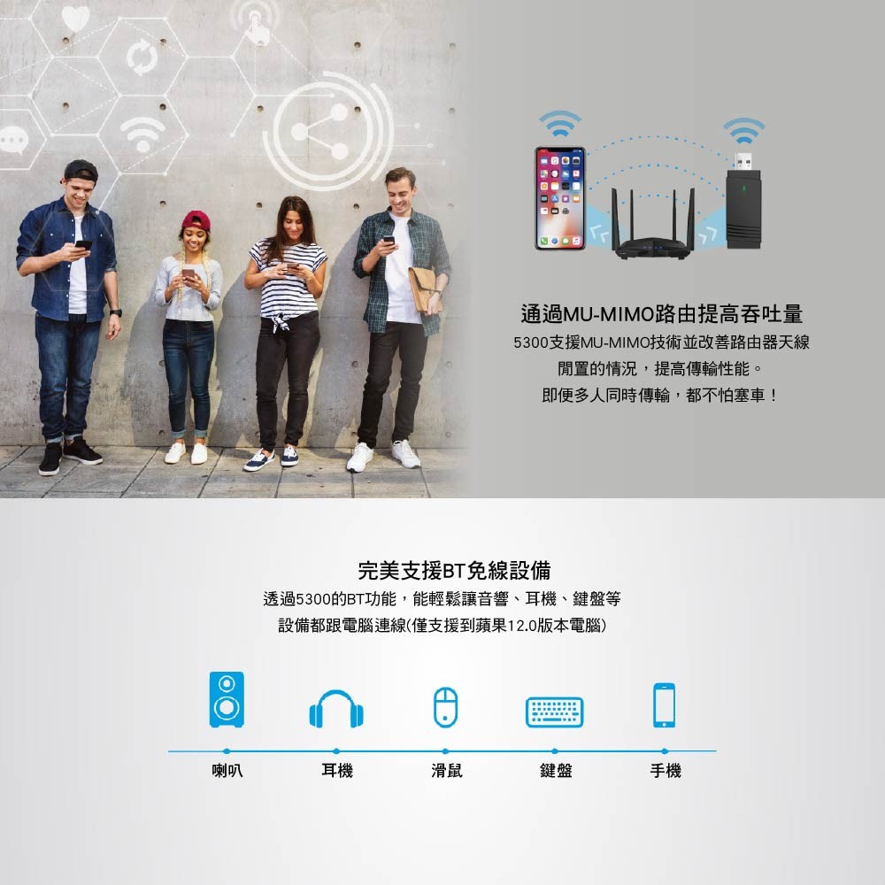 ◆ 雙頻2.4G & 5G,雙倍高速傳輸給您帶來更好的體驗