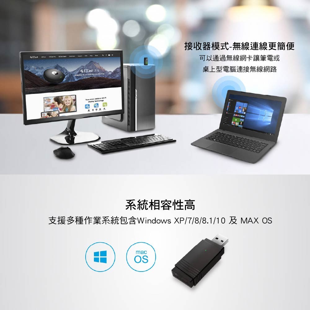 EZcast 1300M 藍牙5.0/WIFI多功能網卡|可支援XBOX搖桿/平板等多種裝置