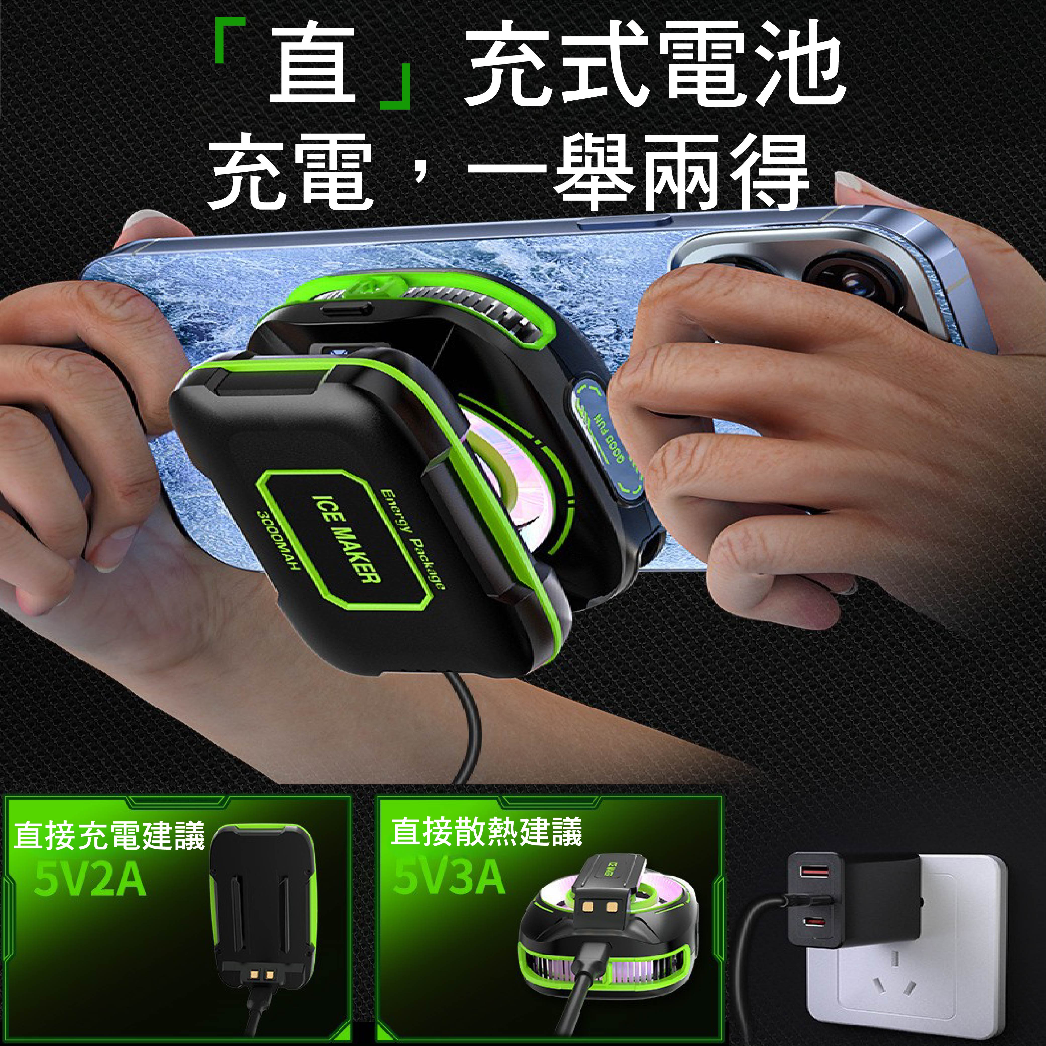 依需求連接電源,選擇直連充電或直連散熱模式