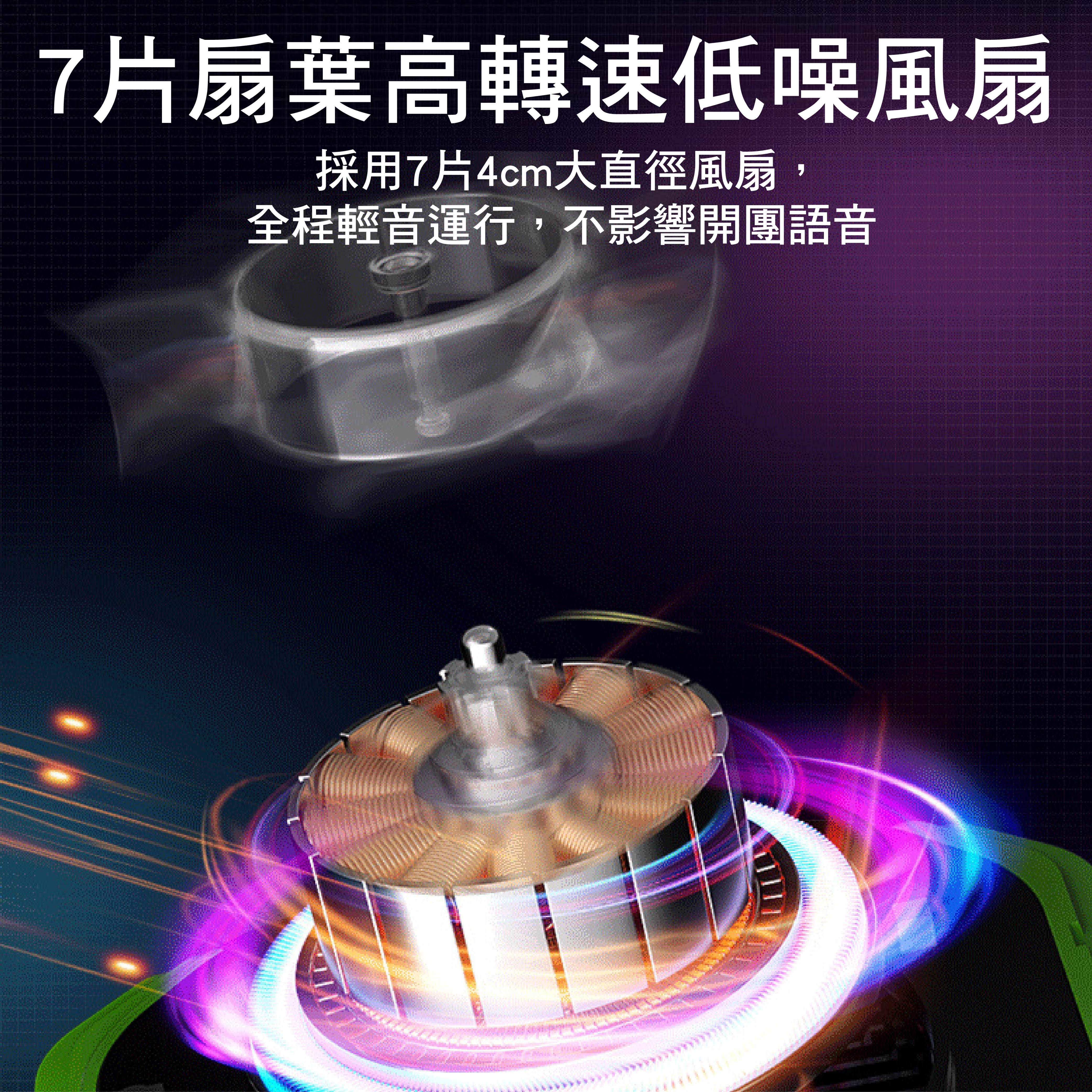 ◆ 7片4cm大直徑風扇,高轉速低噪音,不卡麥克風不影響語音通話