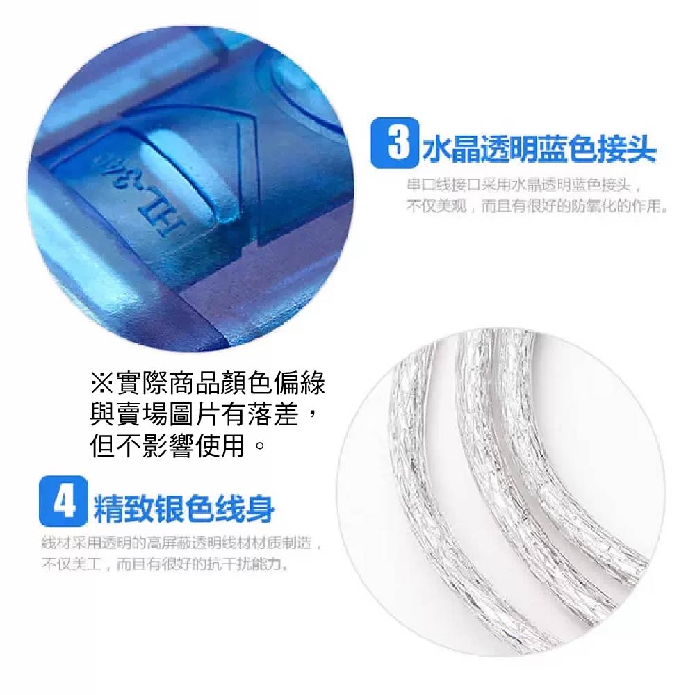 線材材質:銅芯,透明高屏蔽線