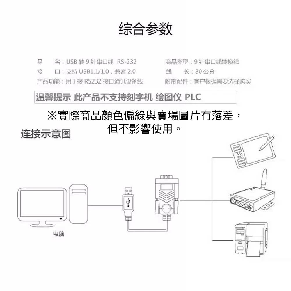 適用於需透過RS232介面傳輸資料的設備,如POS機、繪圖儀、PLC工控設備等