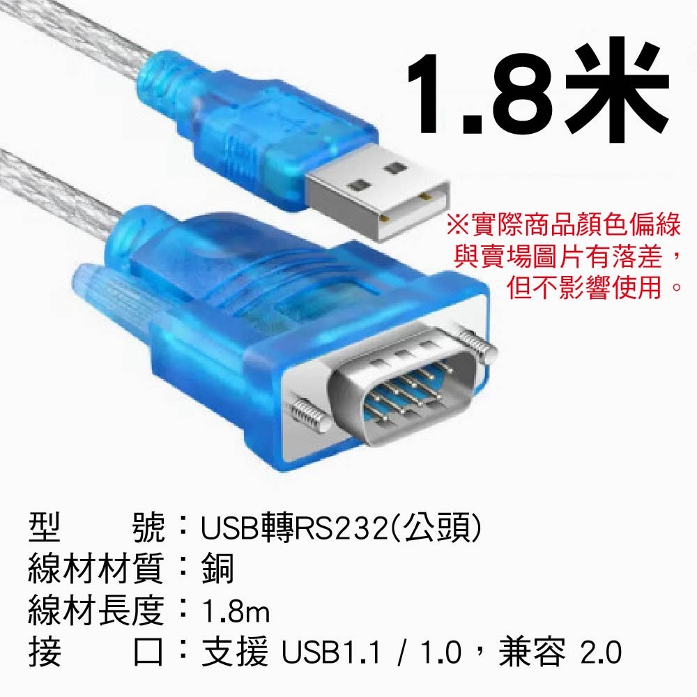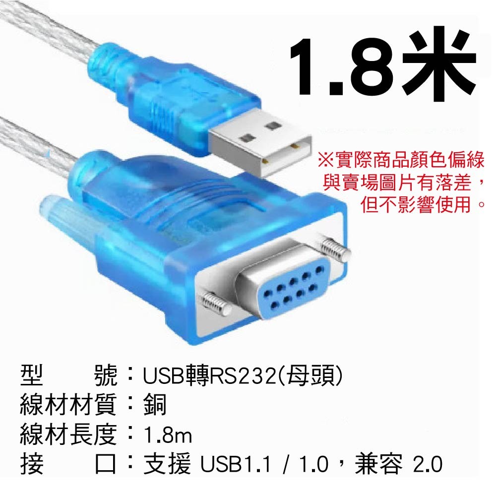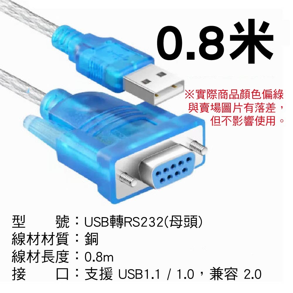 接頭類型:USB A公頭轉 RS232 9針 公/母頭