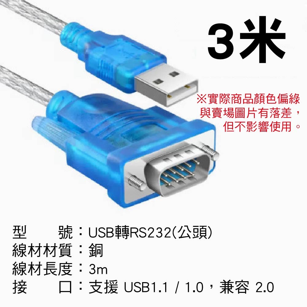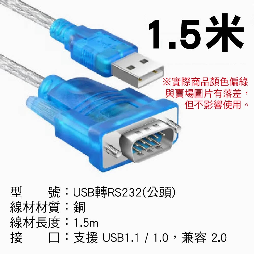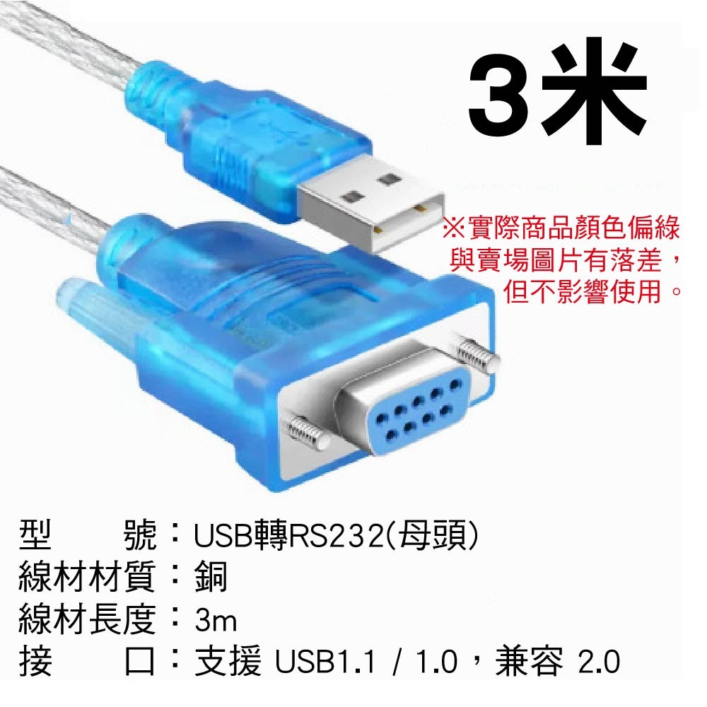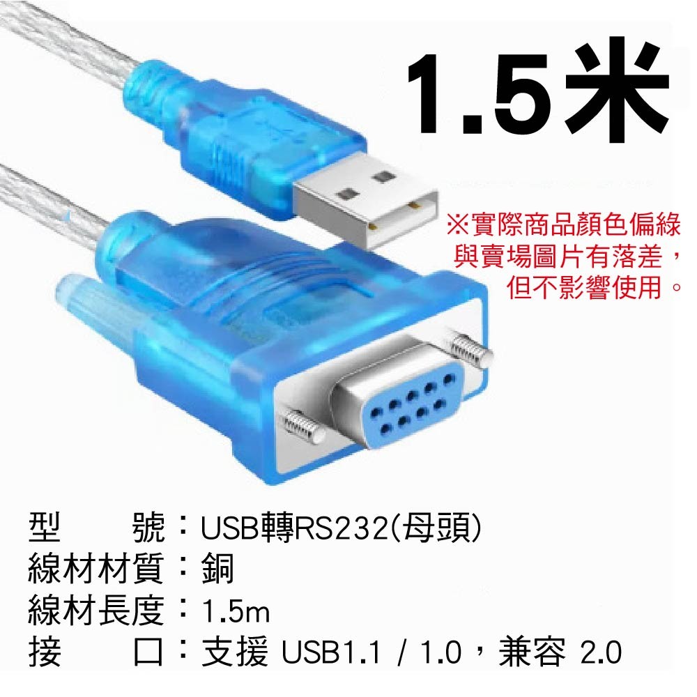 接頭類型:USB A公頭轉 RS232 9針 公/母頭
