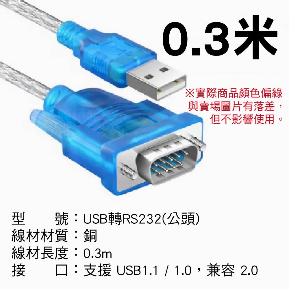 USB轉RS232公母轉接線|DBCH340晶片|線長0.3m~3m
