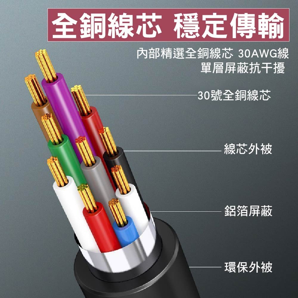 ◆ 採用30AWG全銅線芯,搭配鋁箔屏蔽抗干擾,訊號傳輸更穩定