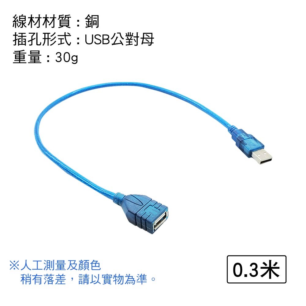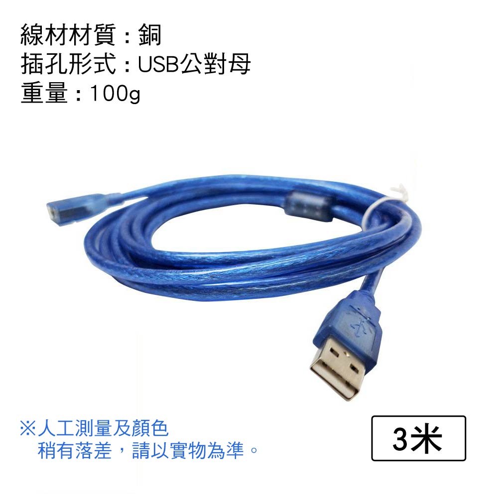 USB 延長線 A公A母 |透藍/黑色|0.3米~10米|編織/磁環抗干擾傳輸延長線