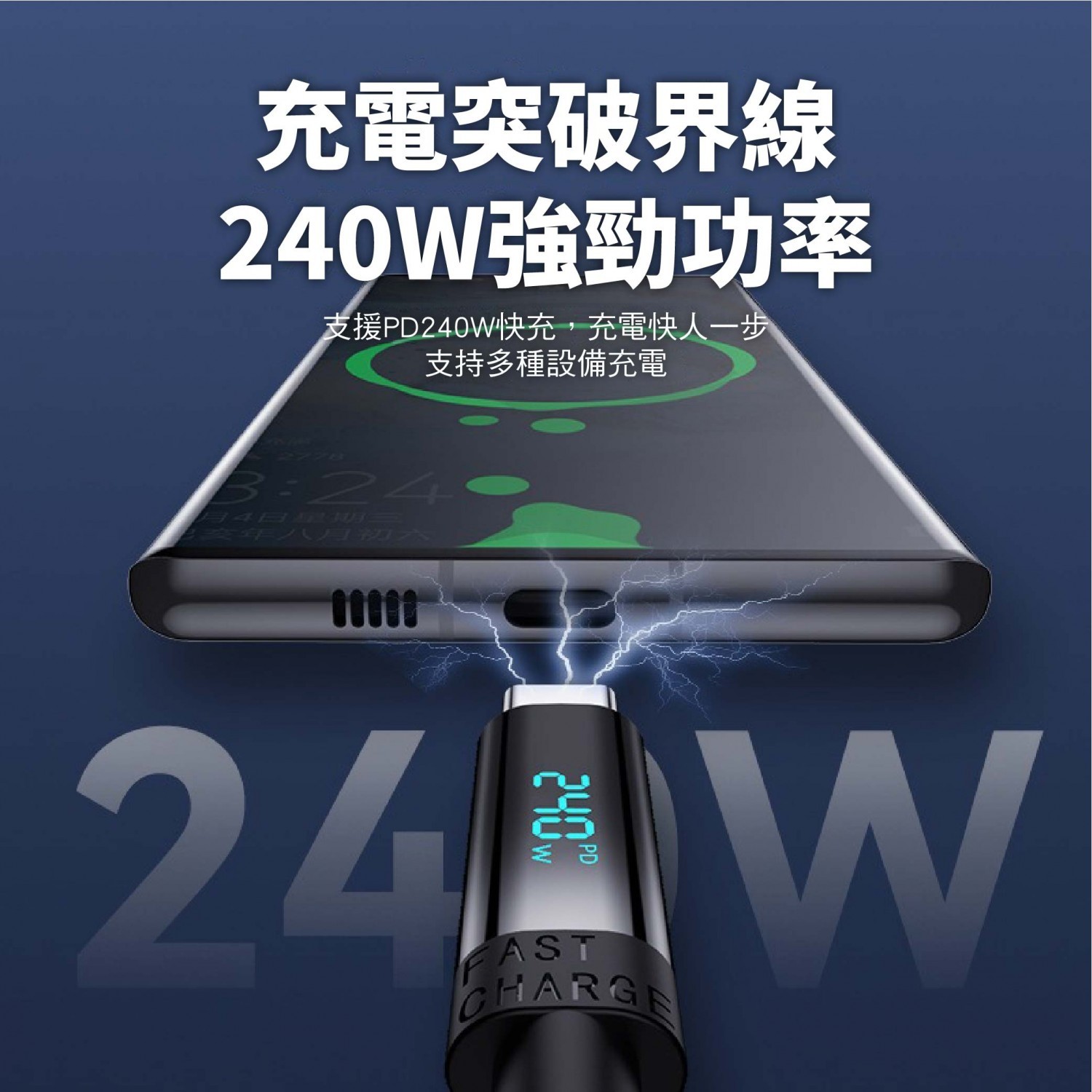 PD240W 快充Type-C公對公 數顯編織充電線|1米/2米