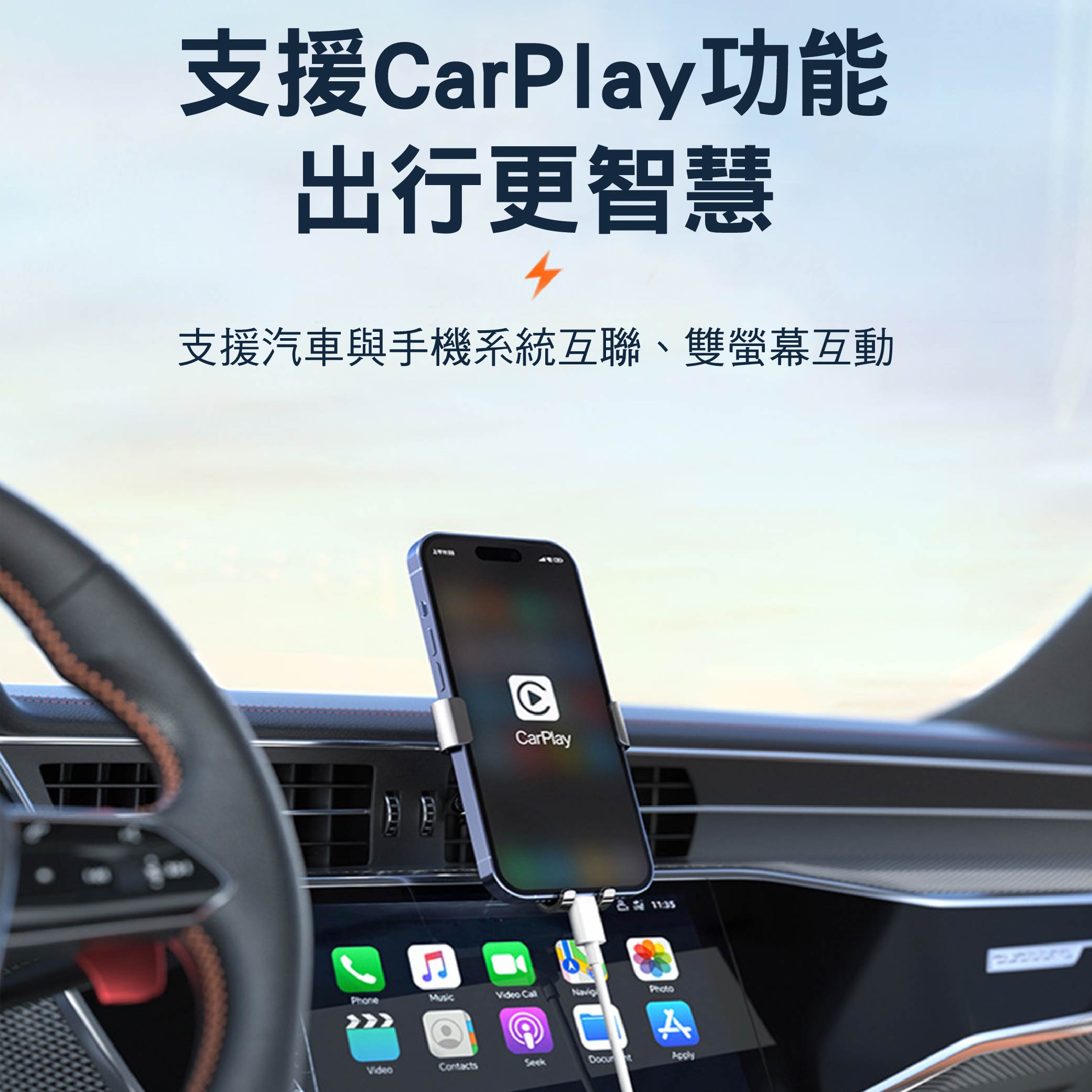 功能:支援數據傳輸,邊充邊傳、支援車機CarPlay投影功能、通過CE認證