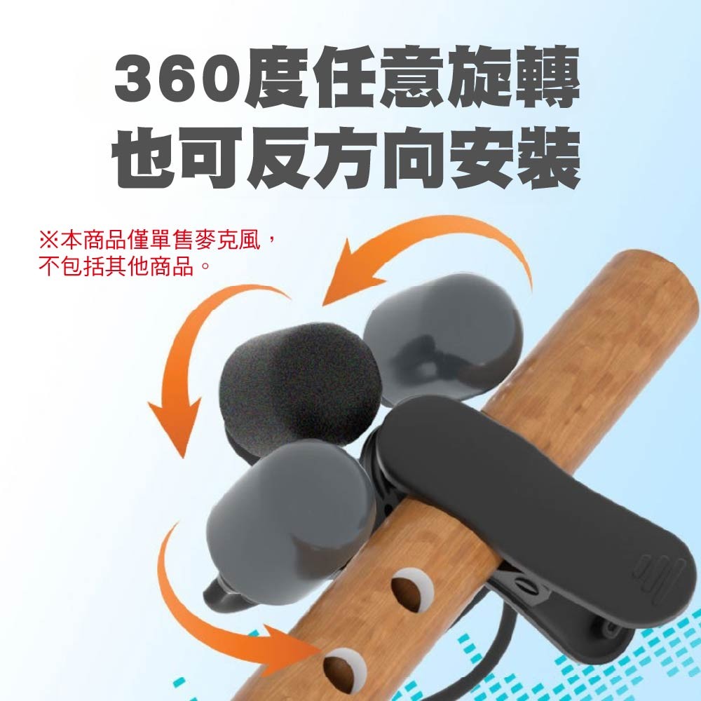 ・支援360度自由旋轉,亦可反向安裝,收音方向更彈性