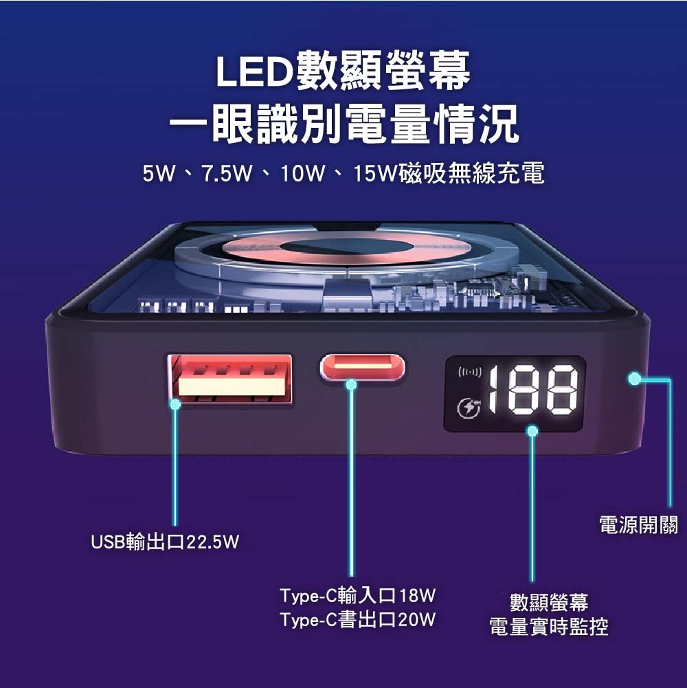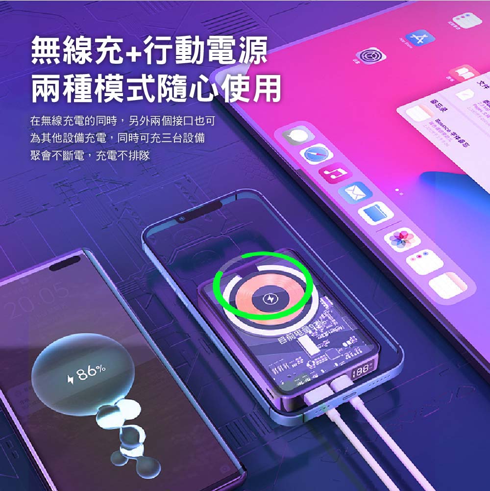 透明磁吸無線行動電源PD22.5W/無線PD15W