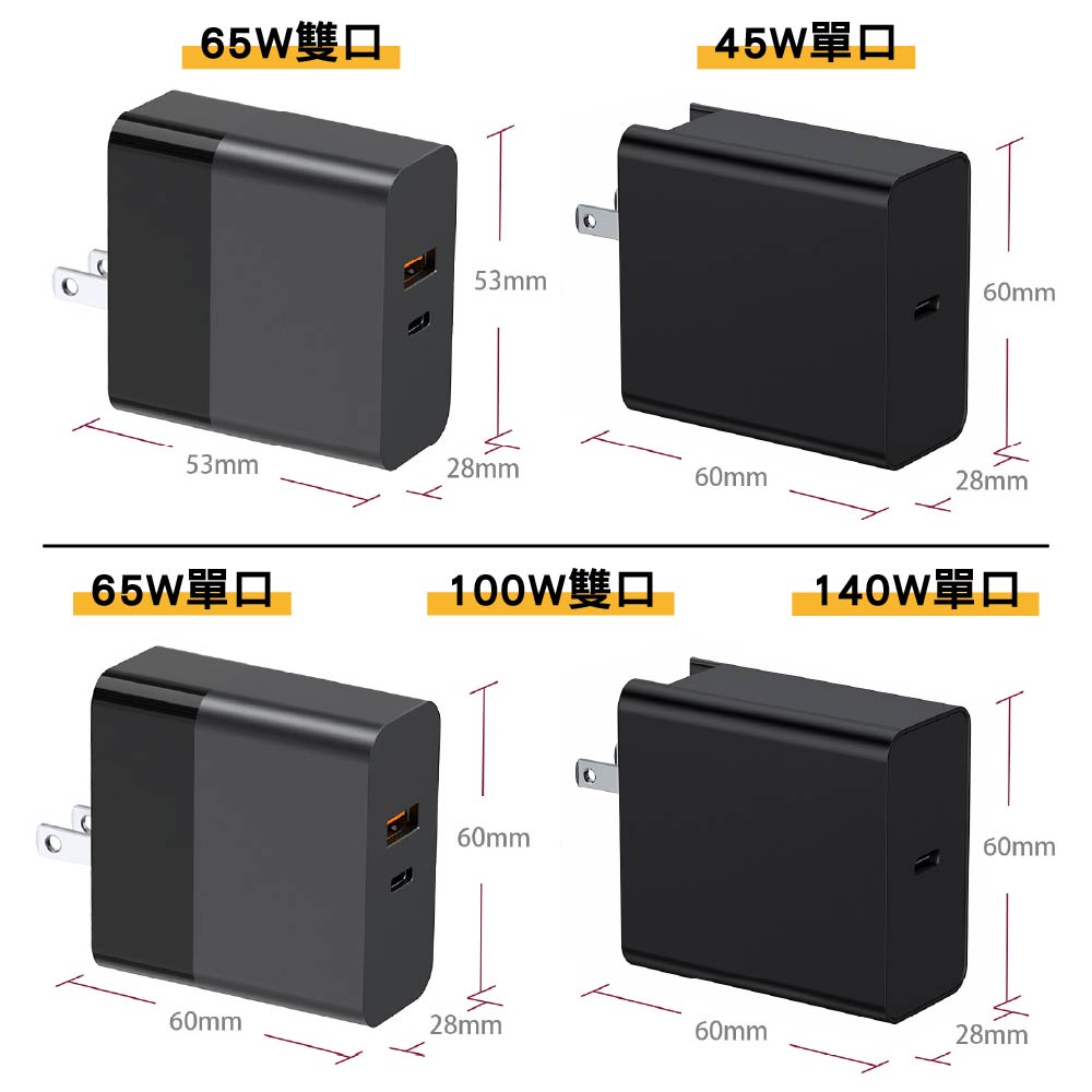 45W/60W/100W/140W可折疊 PD快充充電器