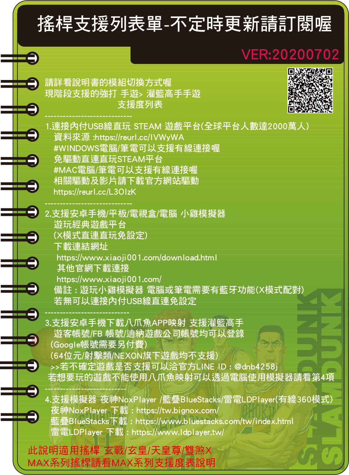 詳細請看下面支援列表