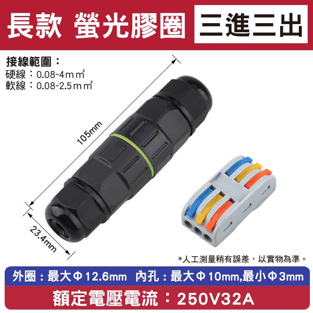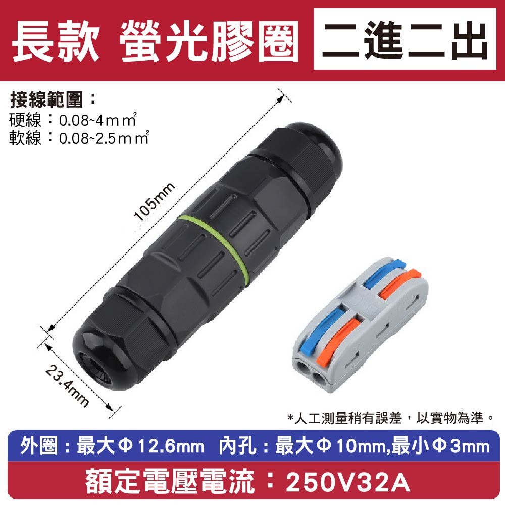 .快速接線防水連接器,直通型設計,支援二進二出/三進三出應用